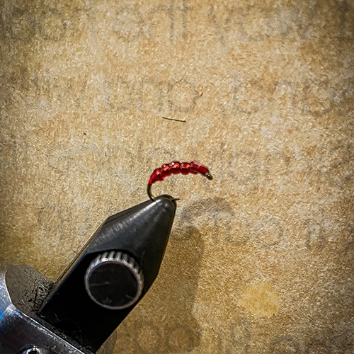 The Gristle Bug is a simple tie that can also produce buckets of fish. Have you ever pumped a trout’s stomach in the spring, or seined the river? Rather than big chunky earthworms, you’ll often seen dozens of tiny blood worms. This is what the Gristle Bug imitates. When paired with a sow bug or a chironomid, the Gristle Bug often dominates during the early season. It does seem like the success of the Gristle Bug varies significantly from year to year. And it also attracts whitefish like no other fly I possess. I have nothing against whitefish, but it gets a bit tiresome when you can’t keep them off your line, which can be the case with the Gristle Bug. But as it only requires a few small glass beads and some red string, only an hour or two is required to tie a year’s worth of Gristle Bugs. It is certainly worth having a few of these simple flies in your box as we move in to spring.