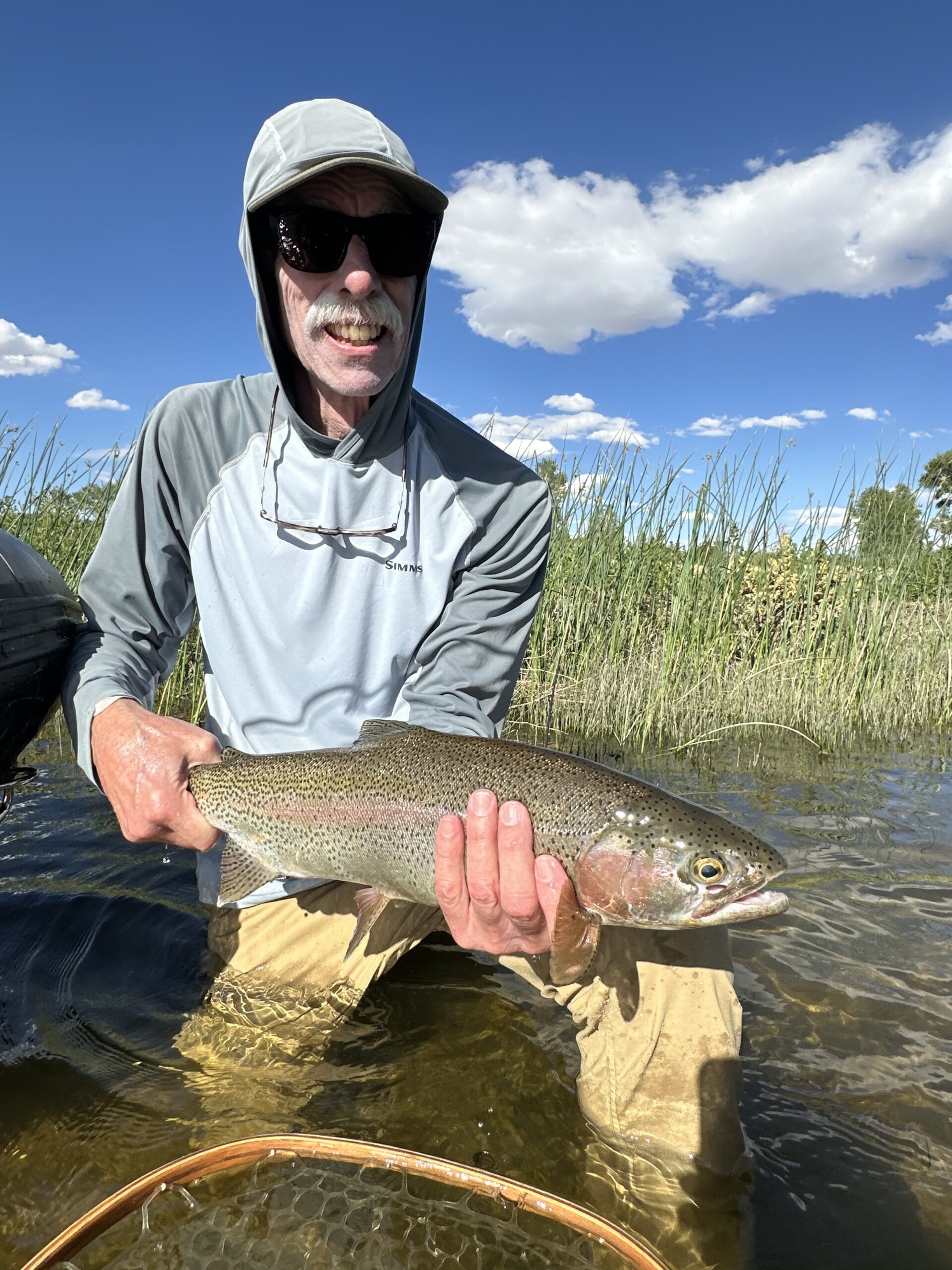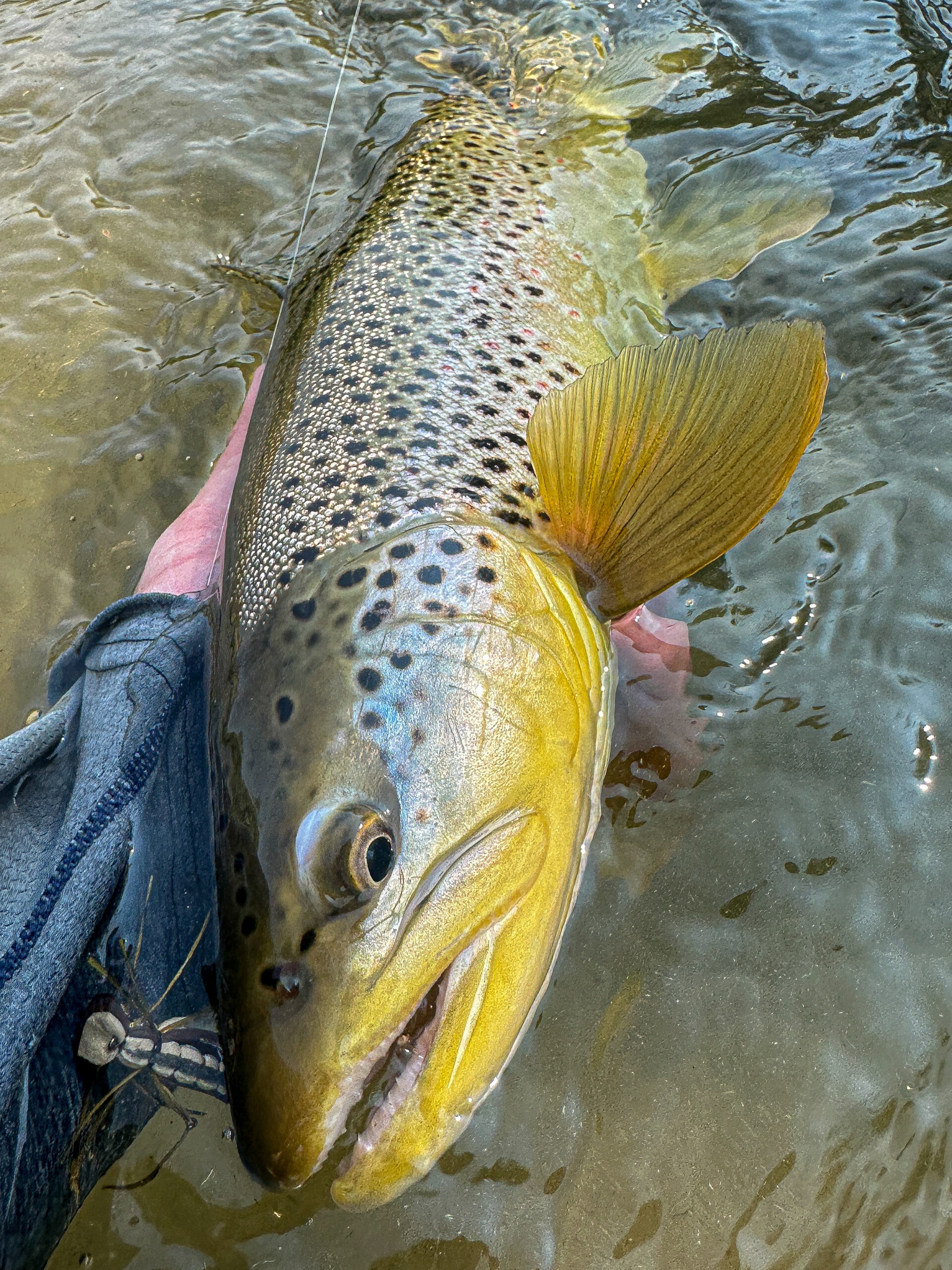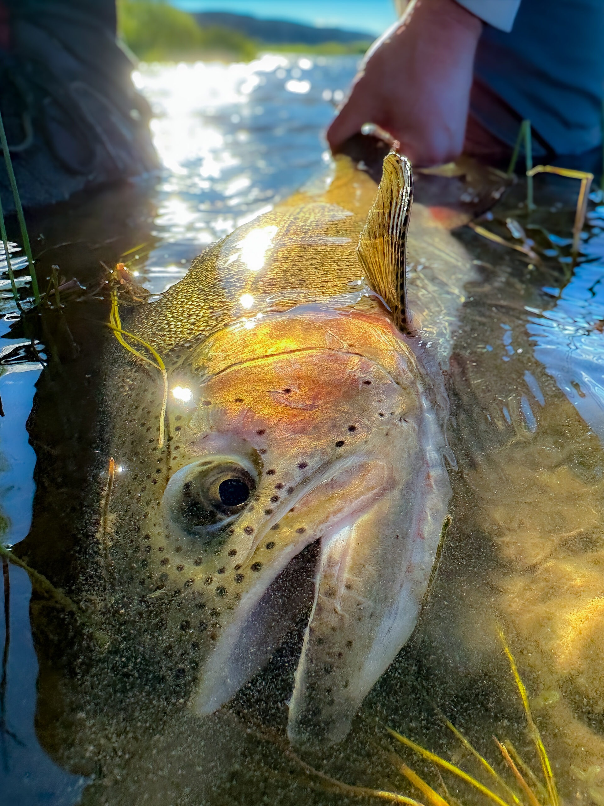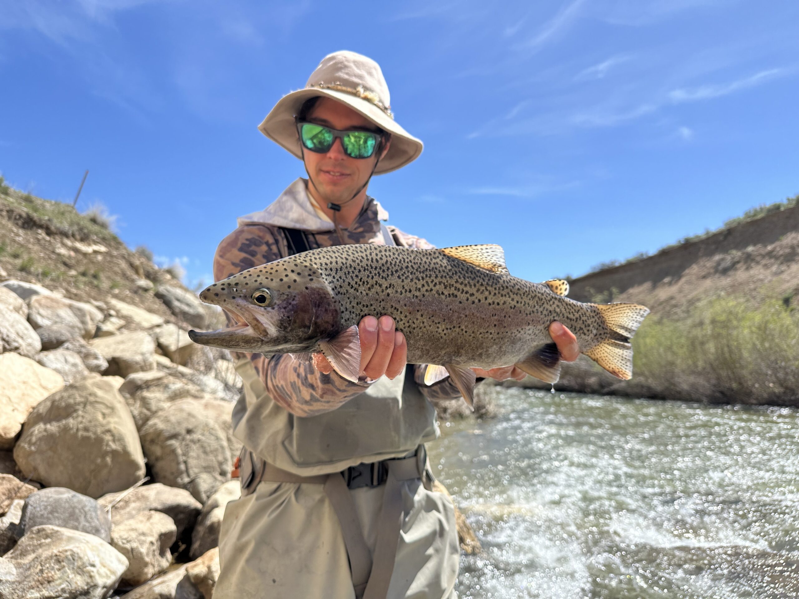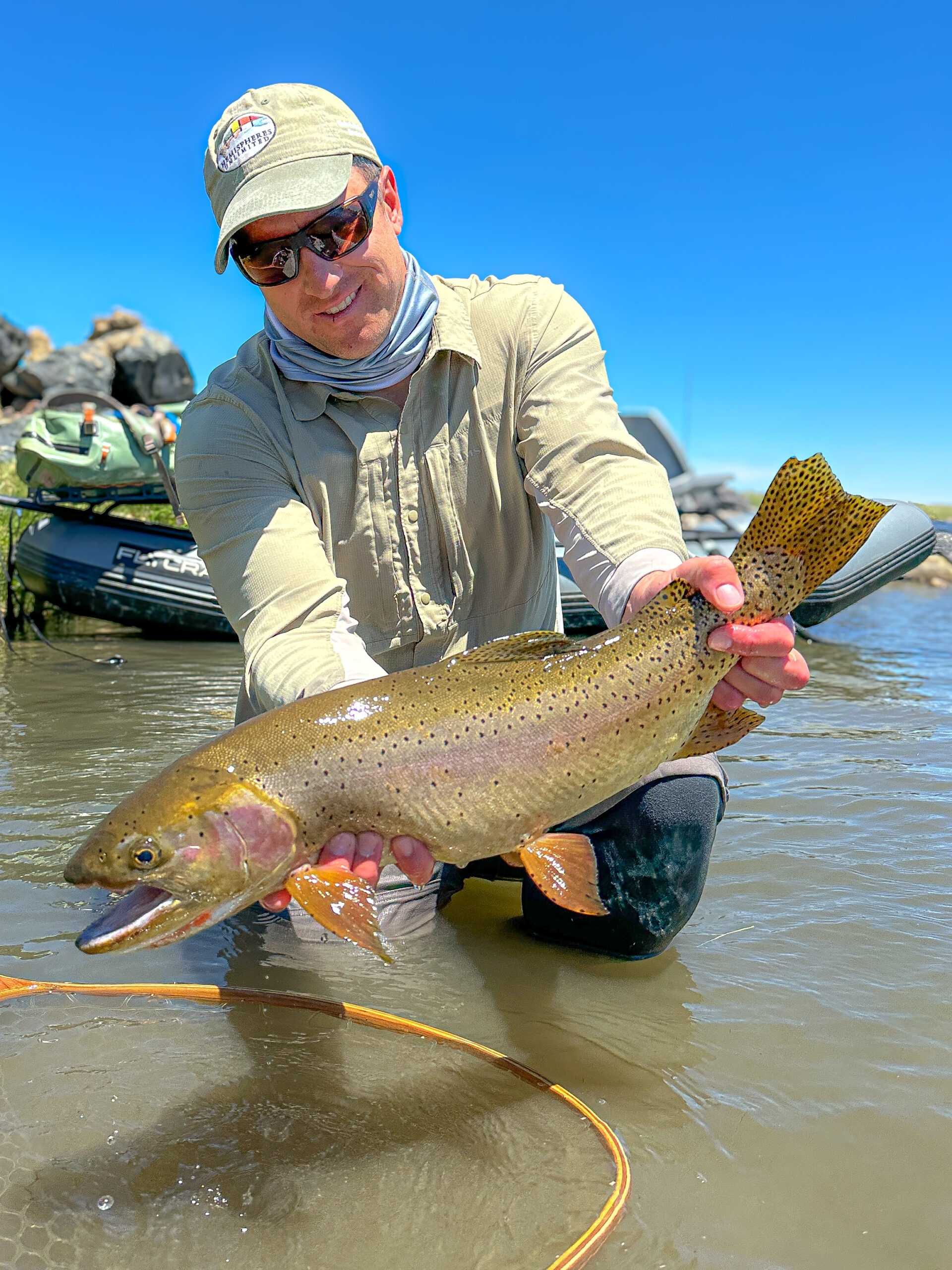 A pair of good wading boots, with a sticky foot sole, is also important for the strenuous wading often involved with hopper fishing. Although they are pricey, the Simms G4 Prolock wading boots are the best on the market in my opinion. With interchangeable cleats, sticky Vibram rubber or felt, and a bomb-proof construction, these boots are perfect for the rigors of long-distance summertime wading. Finally, it is important to size up tippets during the hopper season. These larger flies require a thicker connection to avoid broken tippet and broken hearts. The big flies themselves easily pop off on smaller tippets. Trying to get the fly close to the bank will sometimes result in actually hitting the bank, necessitating a thicker tippet to pull the fly off plants without breaking off. And big hoppers often attract big fish! That extra strength on the tippet helps land the river’s largest denizens. Unless I”m fishing a small mountain stream, I rarely go below 3x on my tippet with hoppers, and 2x is often my preferred size.