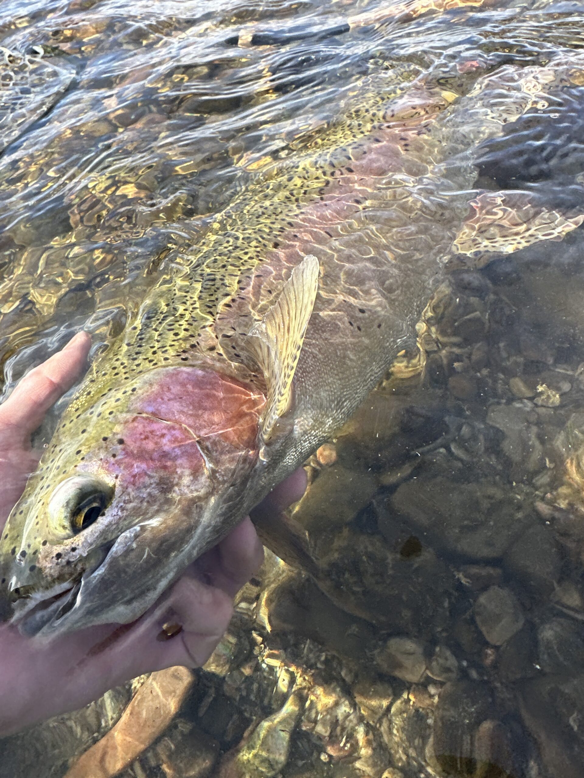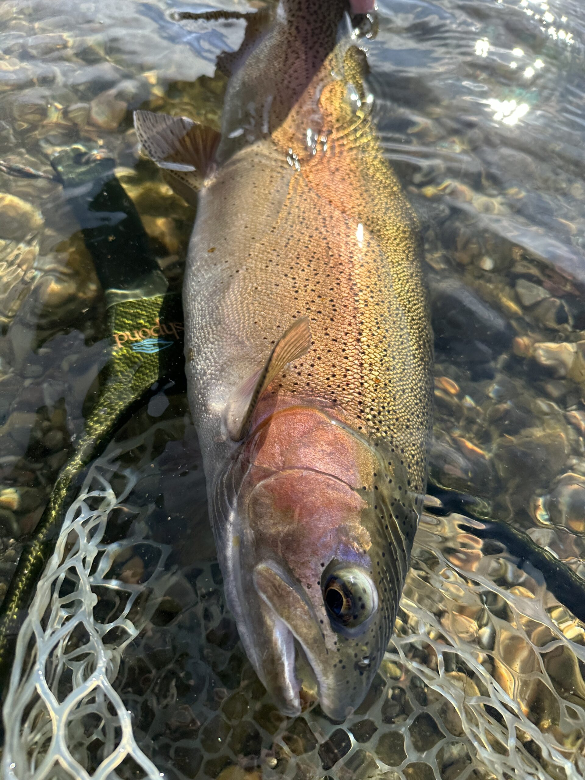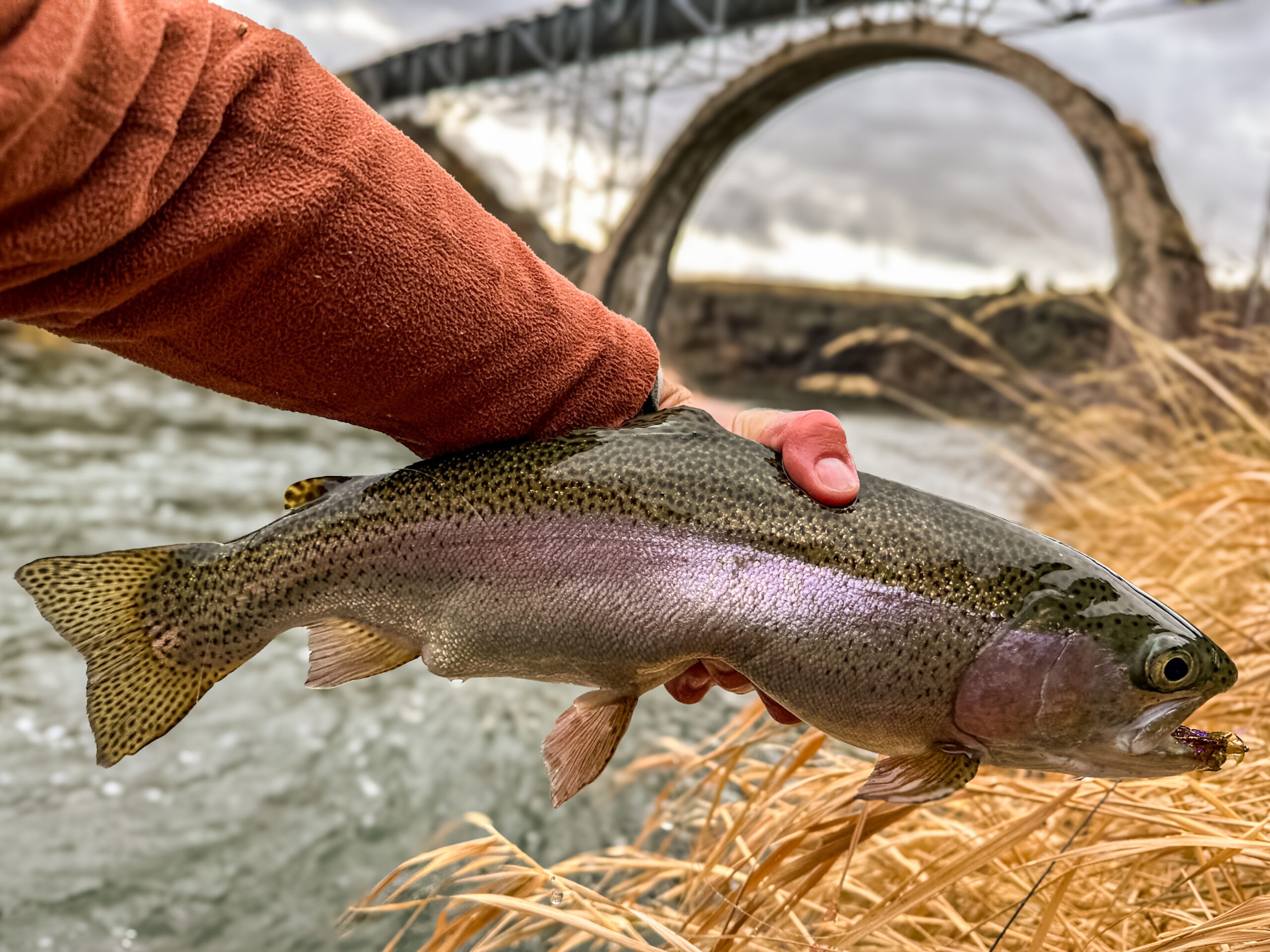 A surprising amount of surface activity will occur during the winter months. Particularly on the warmer days of winter, a sporadic nose will be seen here and there, often sipping midges or baetis (as spring approaches). It’s often not enough activity to warrant dedicated dry fly fishing all day, but I usually keep my 5-weight Orvis Helios 3F strung up with a mother shucker or similar midge pattern as I stroll down the river, casting a streamer. I wear my Fishpond Thunderhead Submersible Backpack, with a Fishpond Quickshot Rod Holder 2.0, where my 5 weight lives. This allows quick access to the dry fly rod when a riser suddenly appears in front of me.