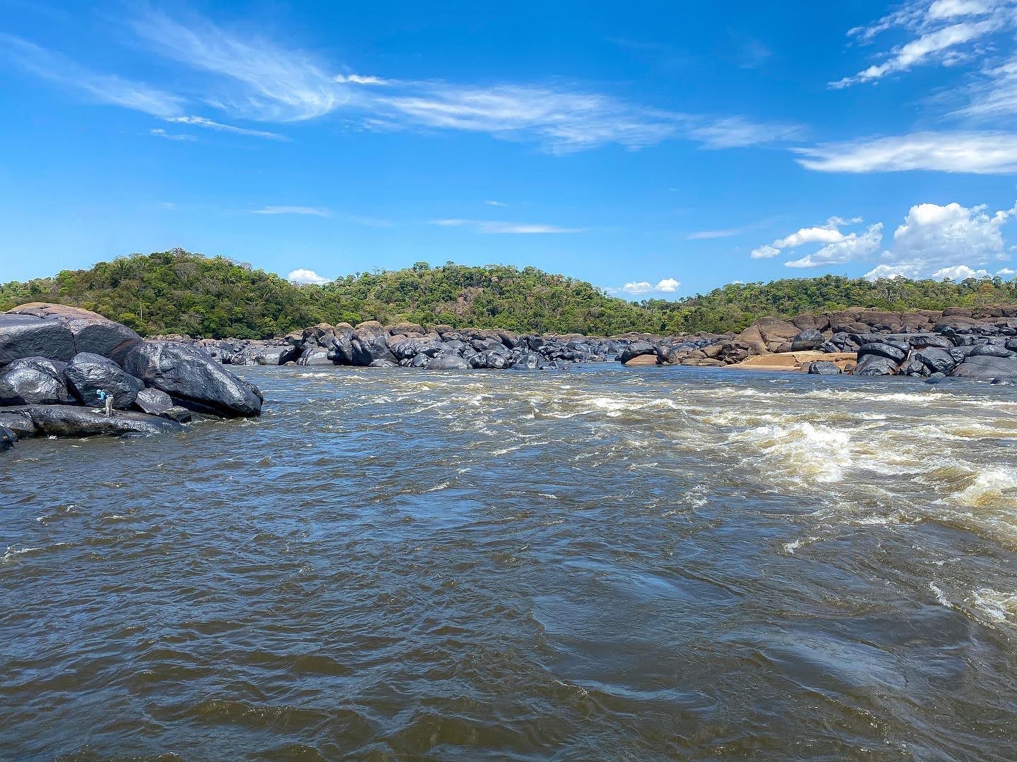 Following a quick breakfast, we retrace the steps of German explorer Alexander von Humboldt, one of the first non-indigenous people to explore the area in the early 19th Century. We pass an incredibly odd and gigantic statue of El Libertador, Simon Bolivar, attached to an abandoned school for troubled city youth who were sent to jungle for reform. Another hour in the boat and we reach the Maipures rapids. Described by Humboldt as the “eighth wonder of the world,” these rapids live up to their name and then some. Seven kilometers of braided class IV and V rapids can be heard from nearly a mile away. Silvio skillfully navigates us through the calmer portions toward the first fishing spot. Here, the payara live.