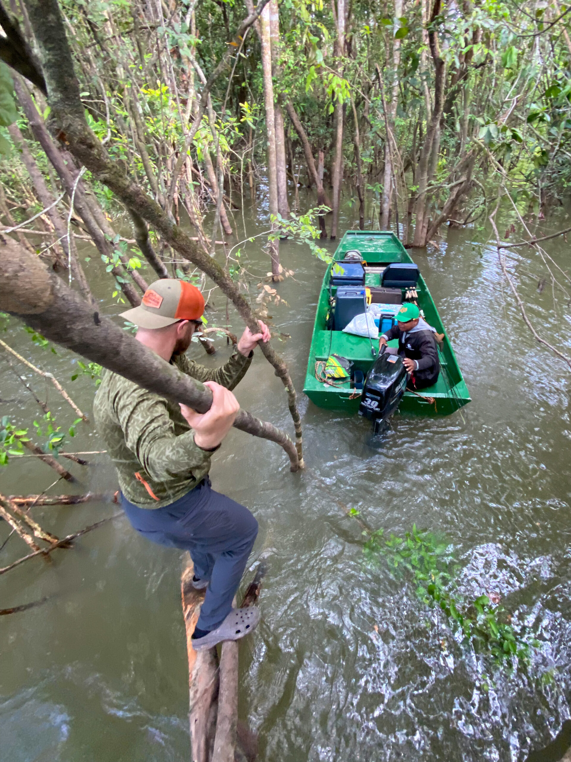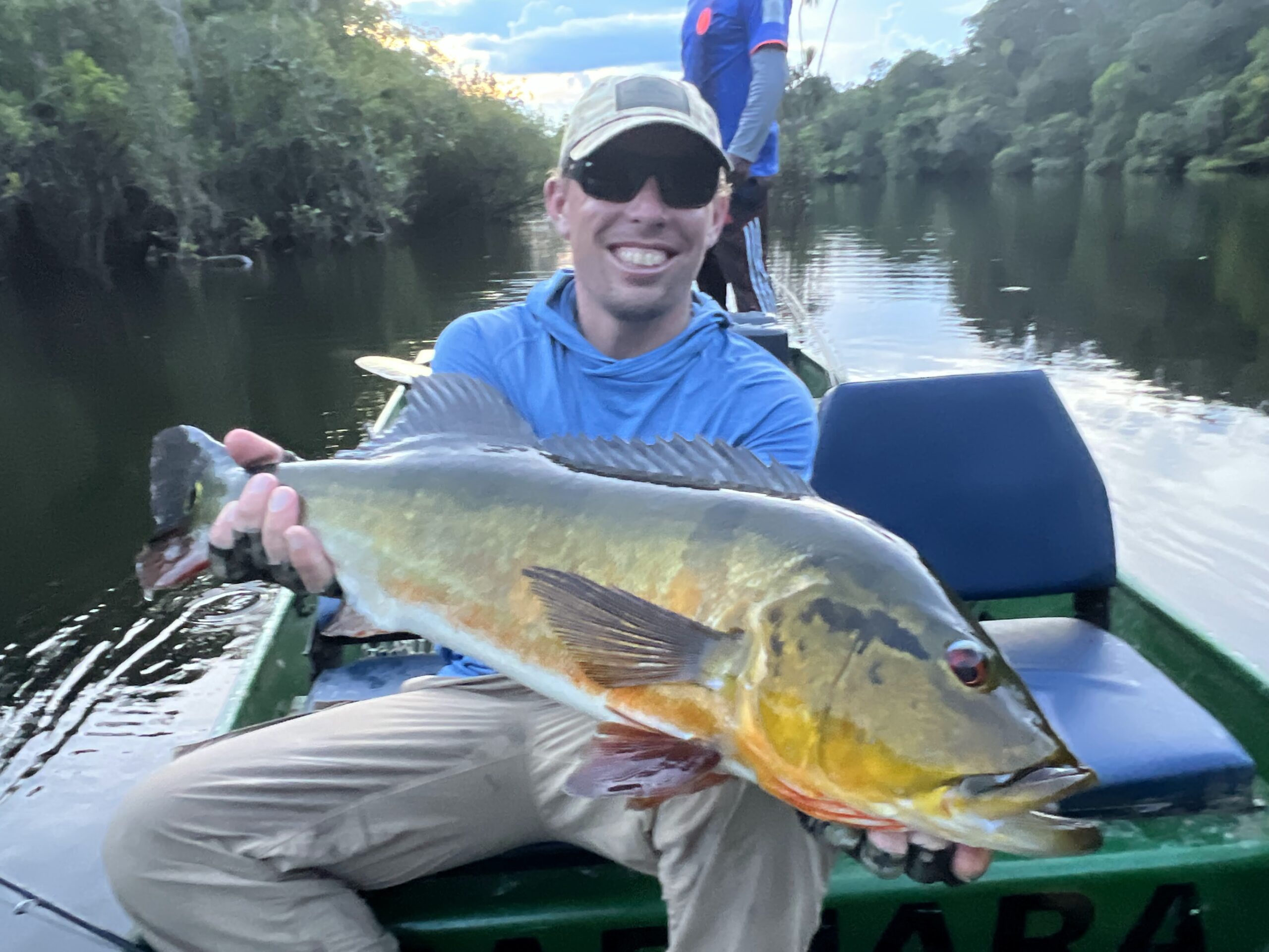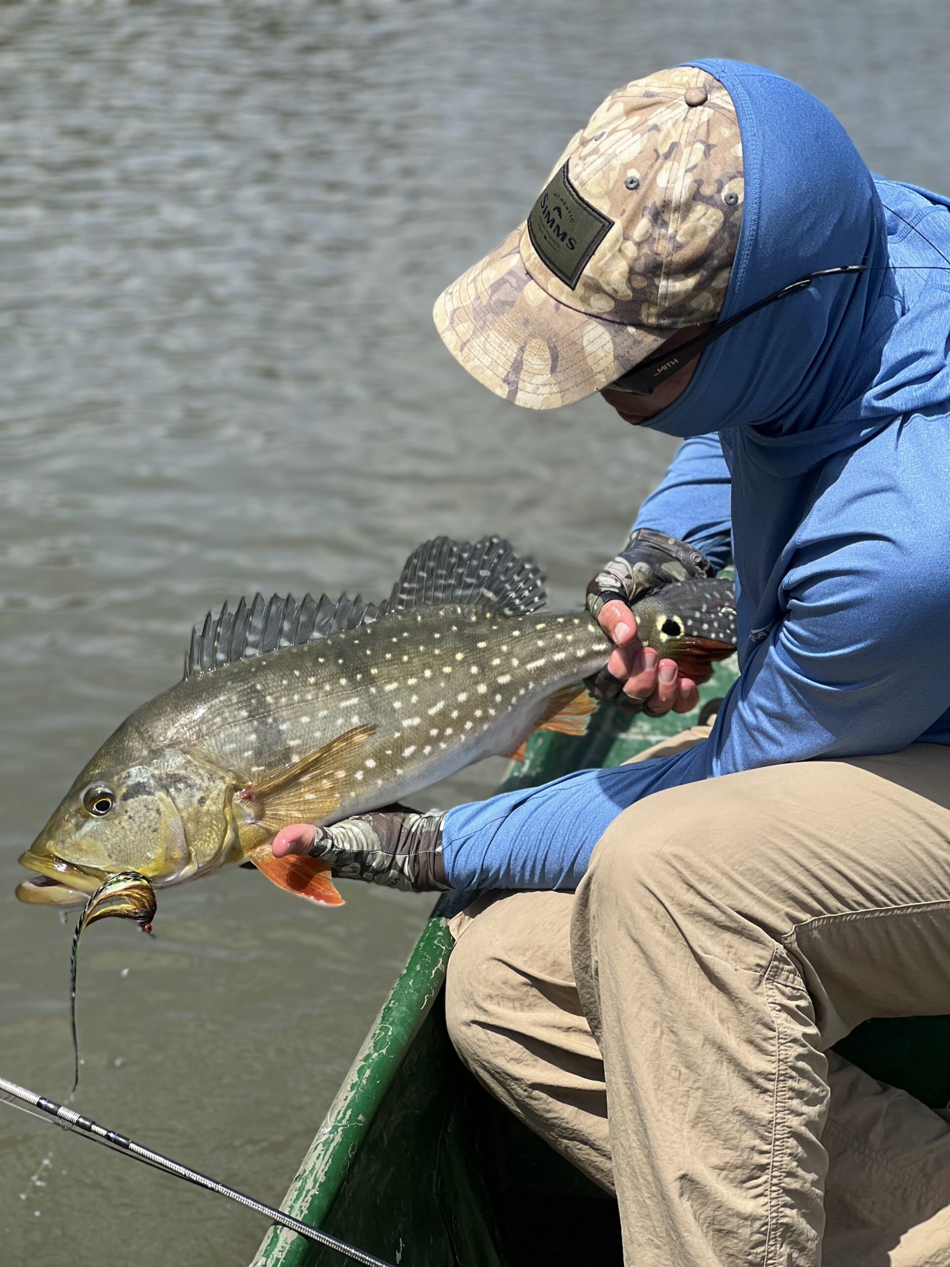 - High Water: When the water is high, peacock fishing becomes much more challenging. The fish prefer to hide in the protection of the flooded jungle, making them much less accessible. I’ve had the misfortune of timing most of my jungle trips with high water, but we have developed a strategy for this circumstance that seems to help produce more fish. The person in the front of the boat fishes a big, noisy popper, which seems to draw the fish out from the jungle. The second angler subsequently cleans up with a streamer after the fish are drawn out. The peacocks will certainly pounce upon a popper at times, but just as often, they follow it in curiosity without committing to the strike. This strategy has produced a number of good peacocks for both myself and my fishing companions.