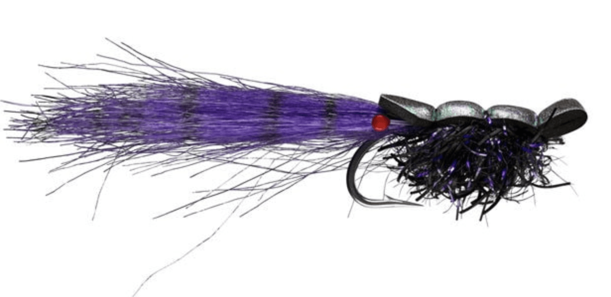 - Rio’s Guido Shrimp size 1/0 – RIO’s Guido Shrimp is a slick gurgler style topwater pattern. In the right conditions this fly triggers spectacular eats from most backcountry flats species including tarpon, snook, redfish, seatrout, and jacks. It comes in black, tan, and white. With the black having purple accents. My favorite color combination for redfish.