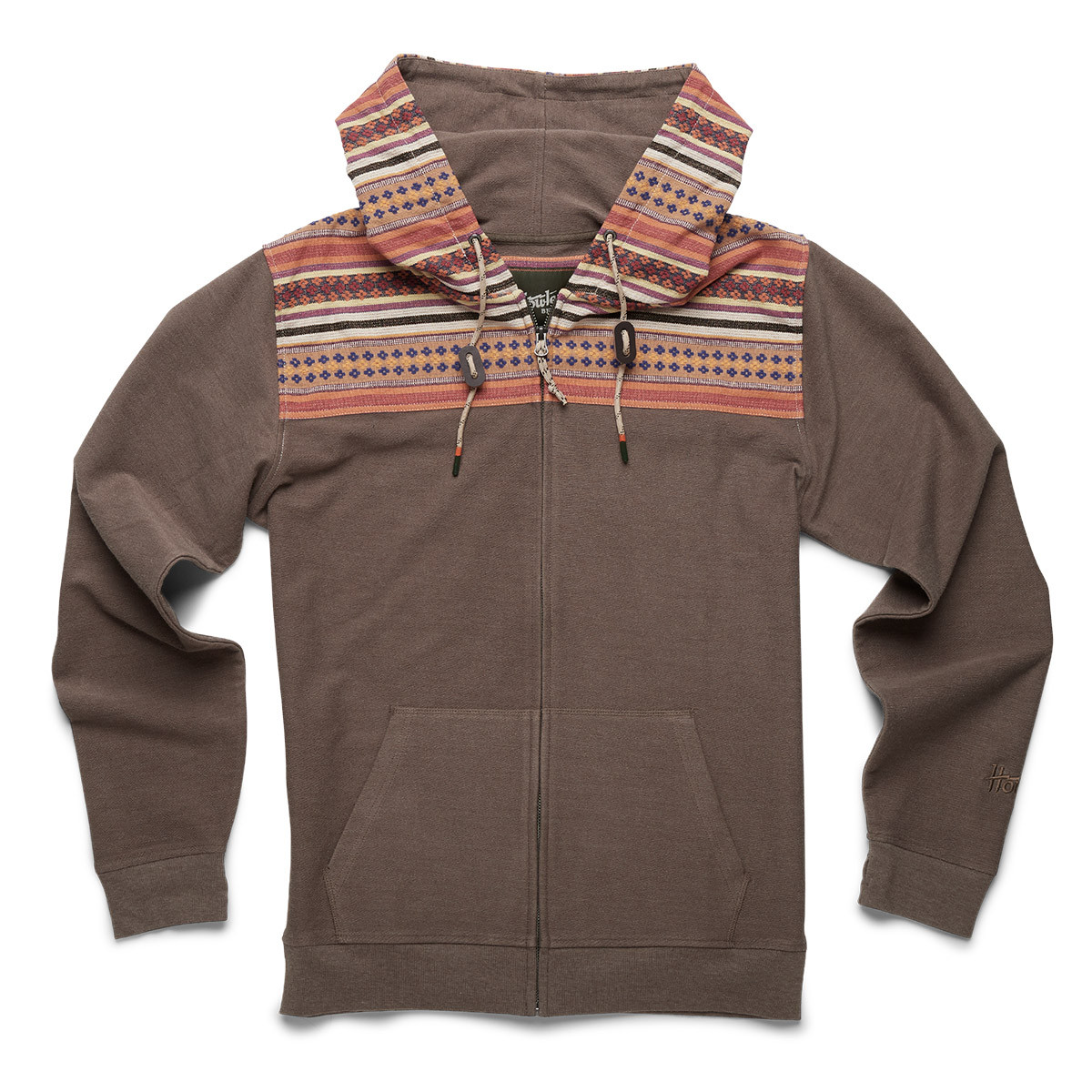 The medium weight, cotton blend Shaman Hoodie with printed canvas yoke will help connect you with your inner medicine man and guide you on your journey to the spirit world. Features include front hand warmer pockets, rear stash pocket, and woven zipper pull cord with leather fobs.