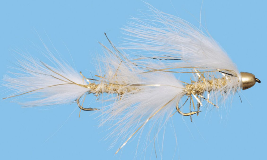 - Articulated Goldie: This fly is a powerhouse in the west, and especially on specific rivers. Its bright white body shows easily in the river, and I find it is best fished on those bright fall days.