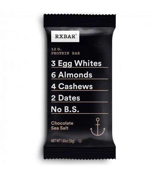 - Think a salted brownie, but better for you. RXBAR Chocolate Sea Salt bars are made with 100% chocolate, and a few other simple ingredients – egg whites for protein, dates to bind and nuts for texture. All topped with a sprinkle of crunchy sea salt, there’s a reason these decadent protein chocolate bars are our top sellers.