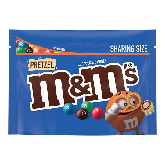 - M&M’S Pretzel Chocolate Candy. Made with real milk chocolate and a crunchy pretzel center, these sharing-size candy bags make splitting Pretzel M&M’S easy and fun!