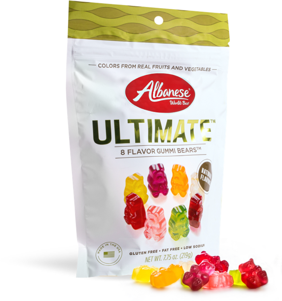 - Have you ever gotten a bag of gummy bears and each color taste the same? Well NOT these. Each color has a distinct flavor. Worth eating the whole bag? Maybe! Albanese Ultimate 8 Flavor Gummi Bears.