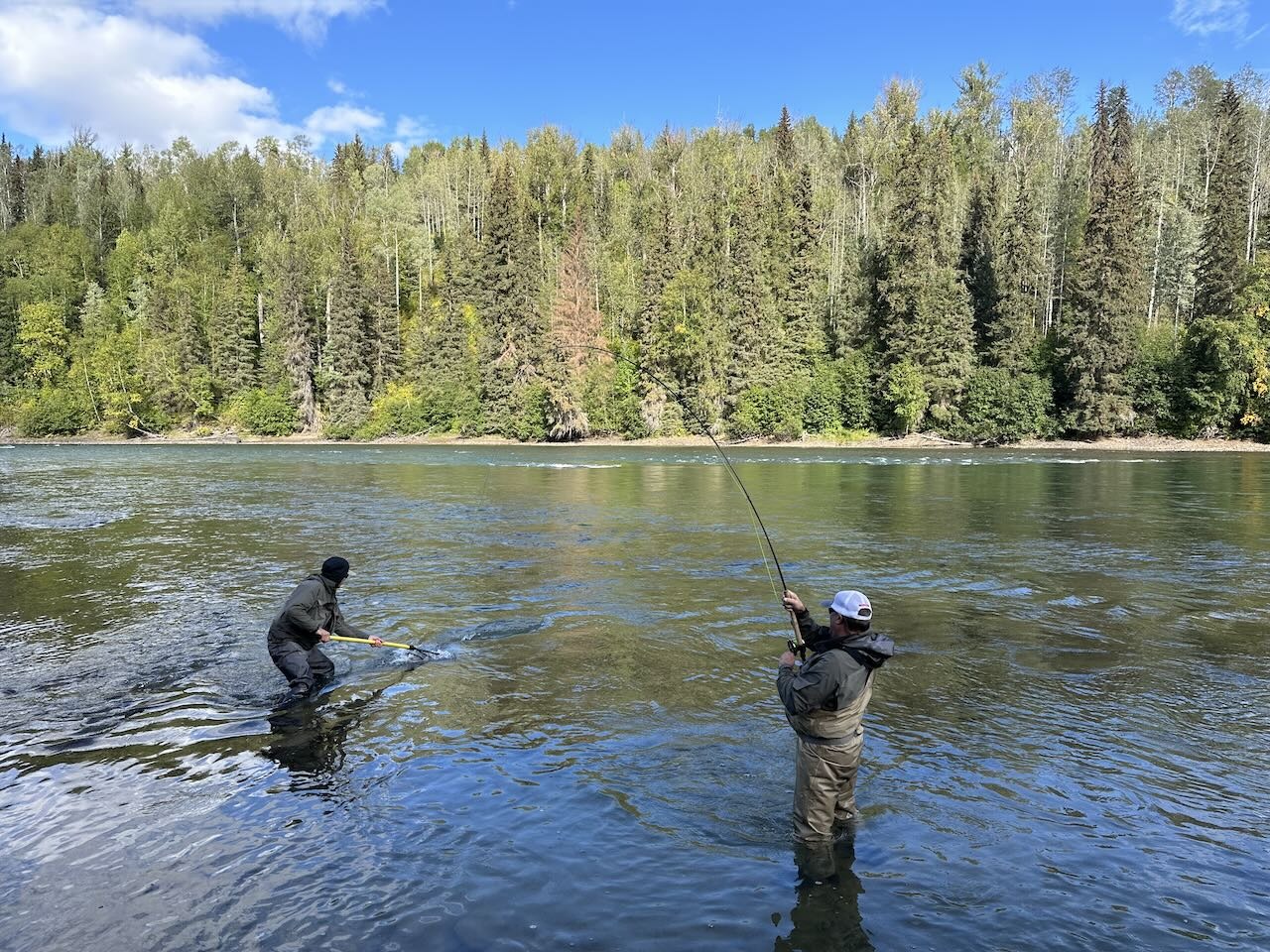 The real fun began on the morning of day three when our group was met bright and early by the Bulkley River Lodge team for our first day of fishing. After enjoying all that the Storks Nest had to offer, we bid the hotel adieu. Some anglers headed for the lodge, while one group took off directly from the hotel to enjoy the stretch of river through town.