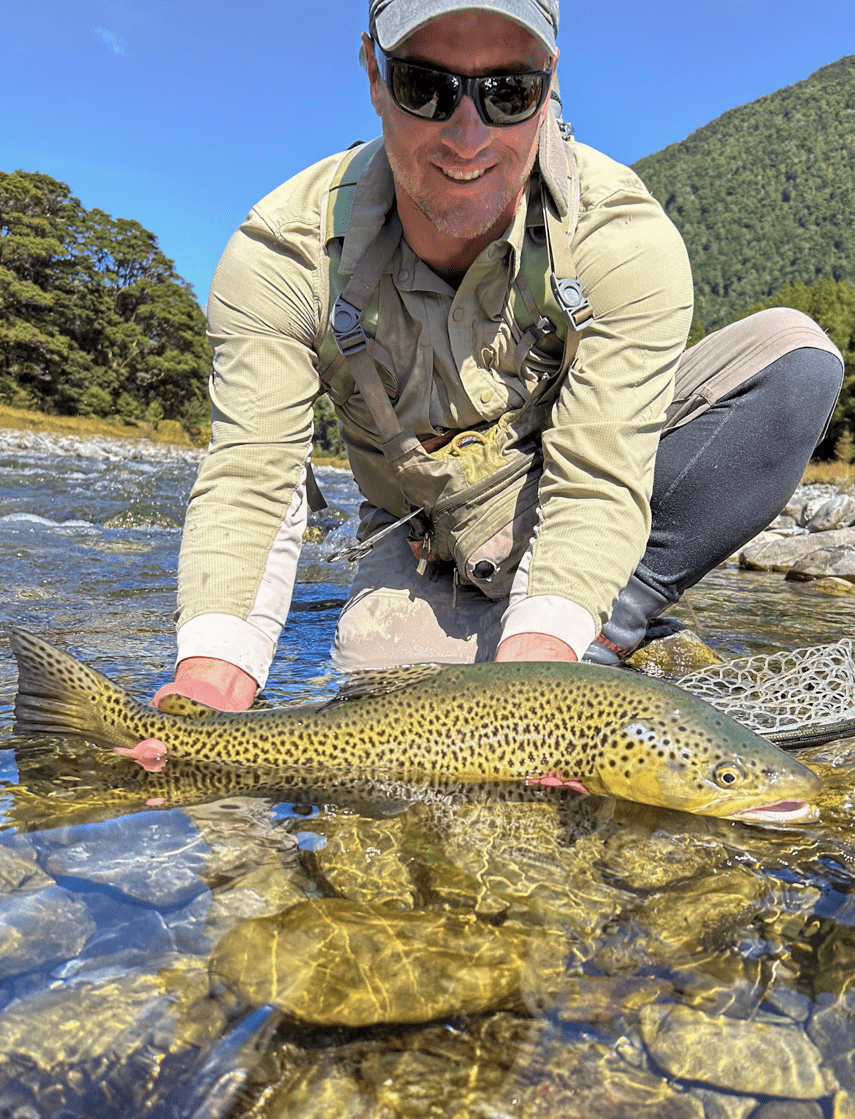 Good eyewear may therefore constitute the most important piece of gear for a South Island angler. As a universal option, I opt for the Smith Guides Choice with Chromapop with a brown lens. An angler with a larger budget might benefit from a low-light lens as well to use on cloudy days.