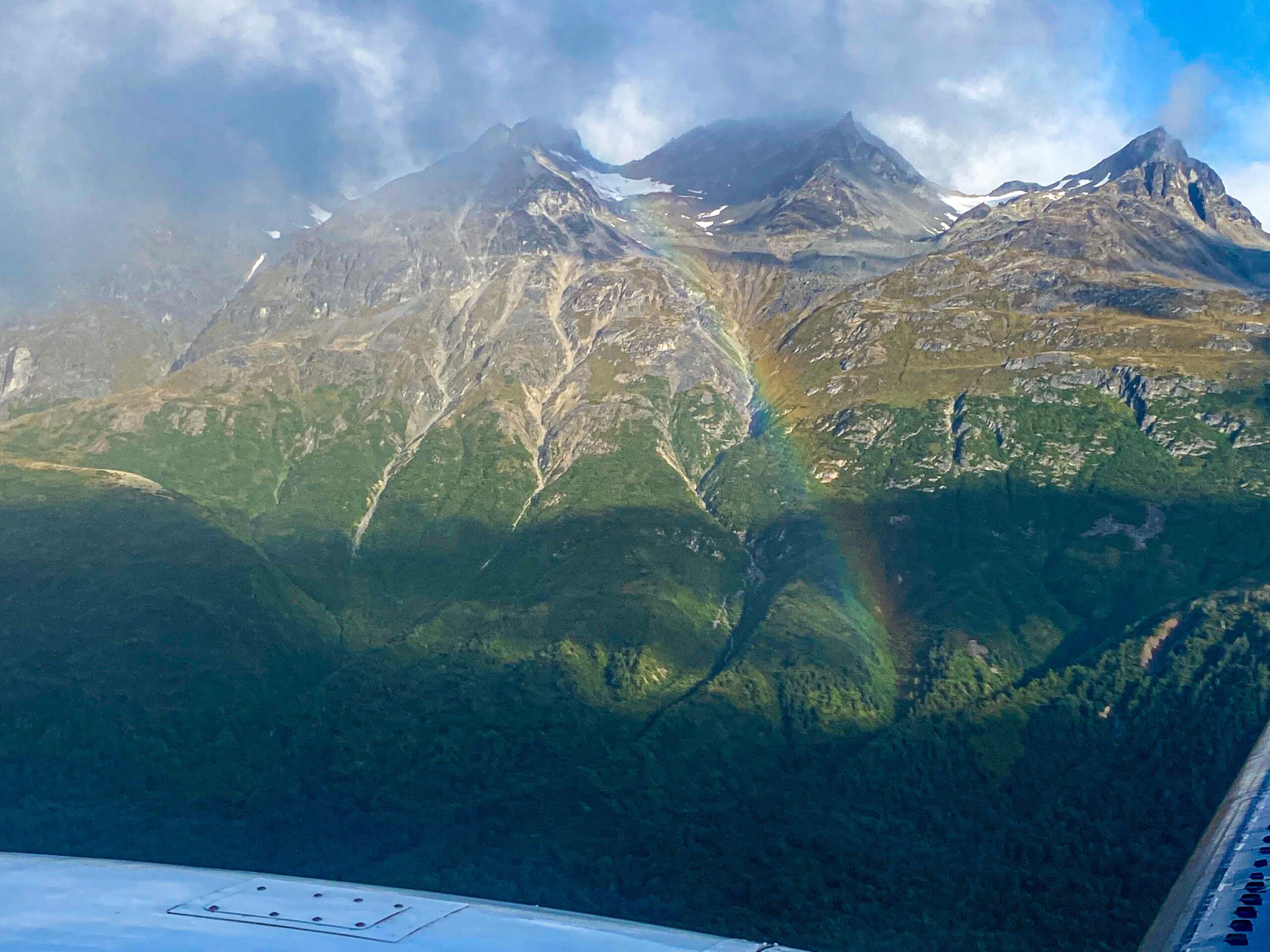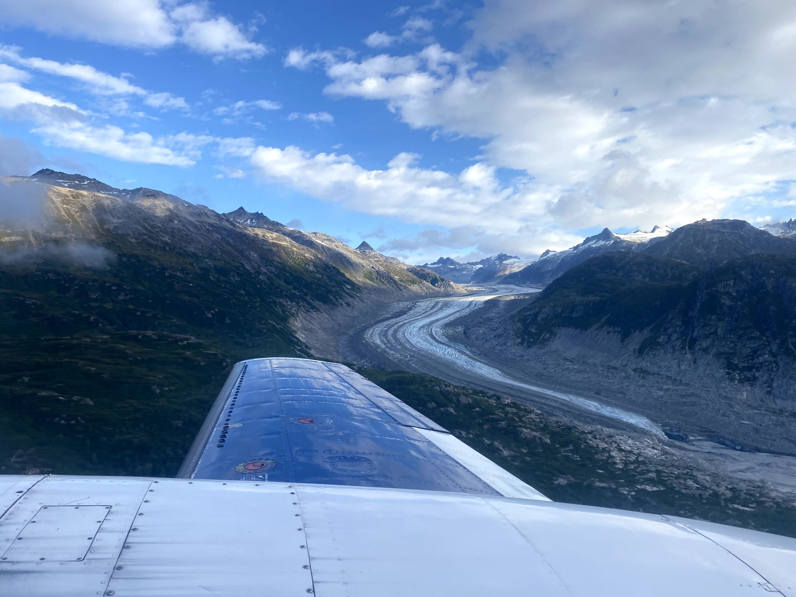 Tom turned out to be a rock solid pilot, and the flight was spectacular. As we approached the Alaska Peninsula, towering snow-capped volcanos came in to view and a v-shaped slit made by Lake Clark Pass invited us through the mountain range. The plane shuddered repeatedly as winds swept down the hanging glaciers that towered above us. But we were so much in awe of the incredible surrounding landscape that any lingering trepidation about the flight had dissipated. As the plane’s fuel gauge hovered around the empty mark, I thought about questioning our fuel status, but thought better of it, figuring Tom knew what he was doing. And if he didn’t… well our fate was sealed anyway. Fortunately, our runway came in to sight, and Tom landed the plane without so much as a single bounce. We all marveled at what we had just experienced. People would pay good money for a flightseeing tour like had just witnessed, but that was only part of our transportation to our final destination.