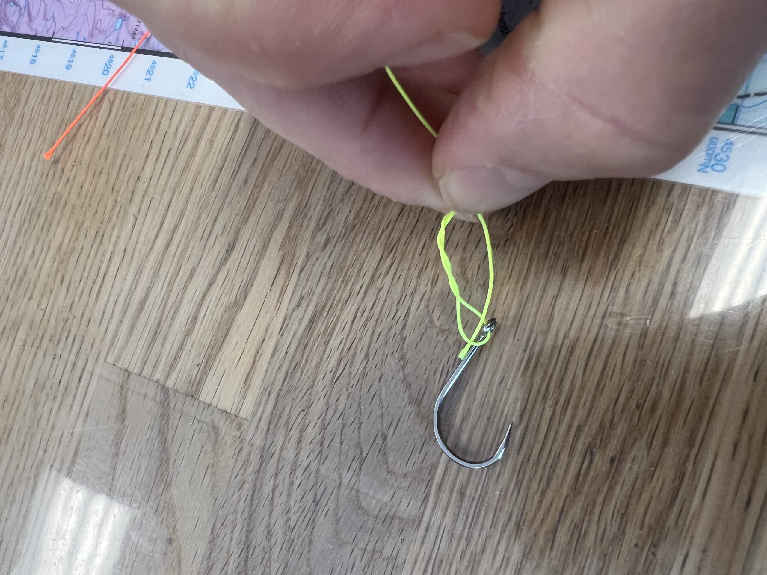 - Gently pull the tag ends to dress the knot before fully cinching it down.