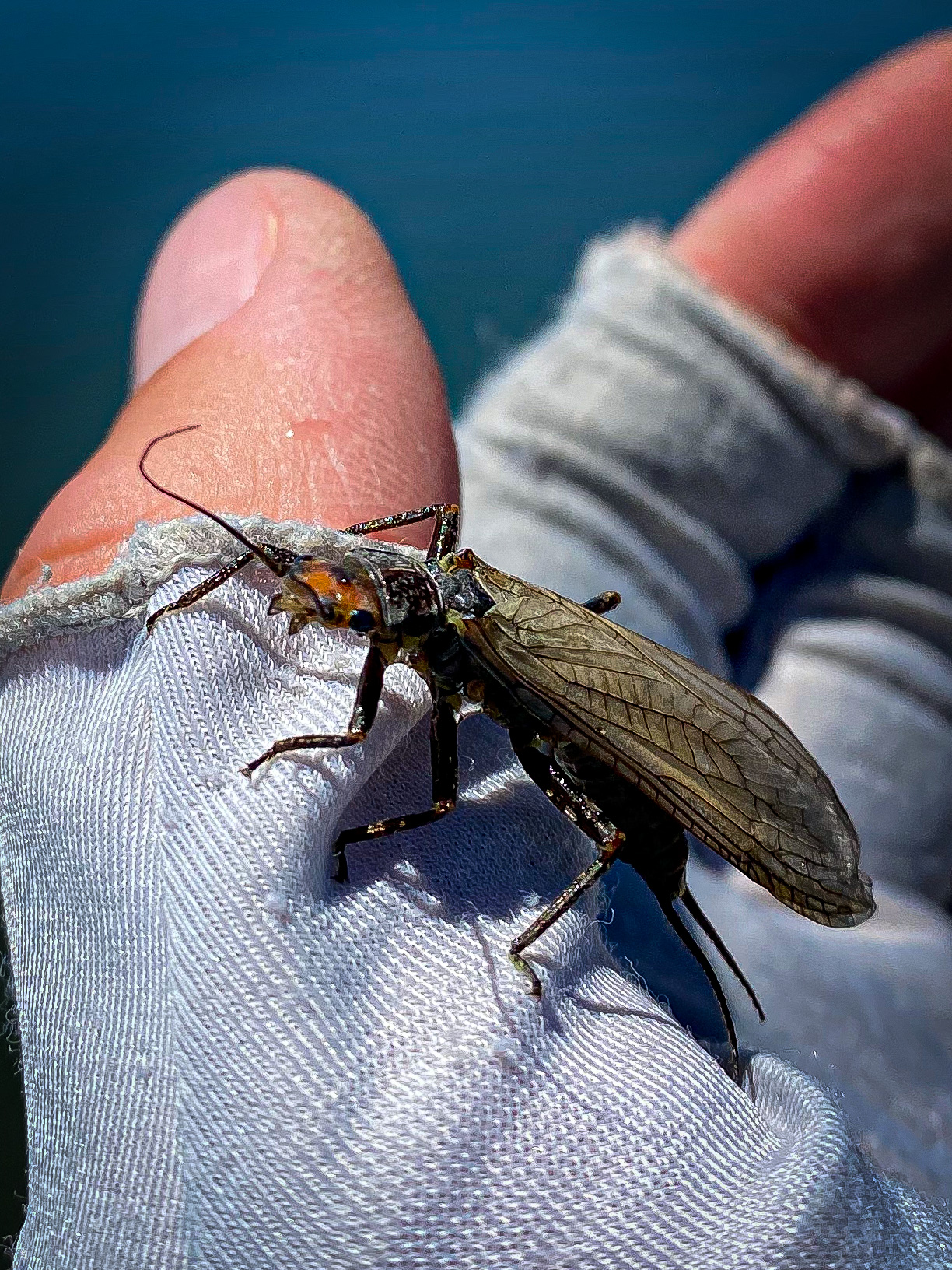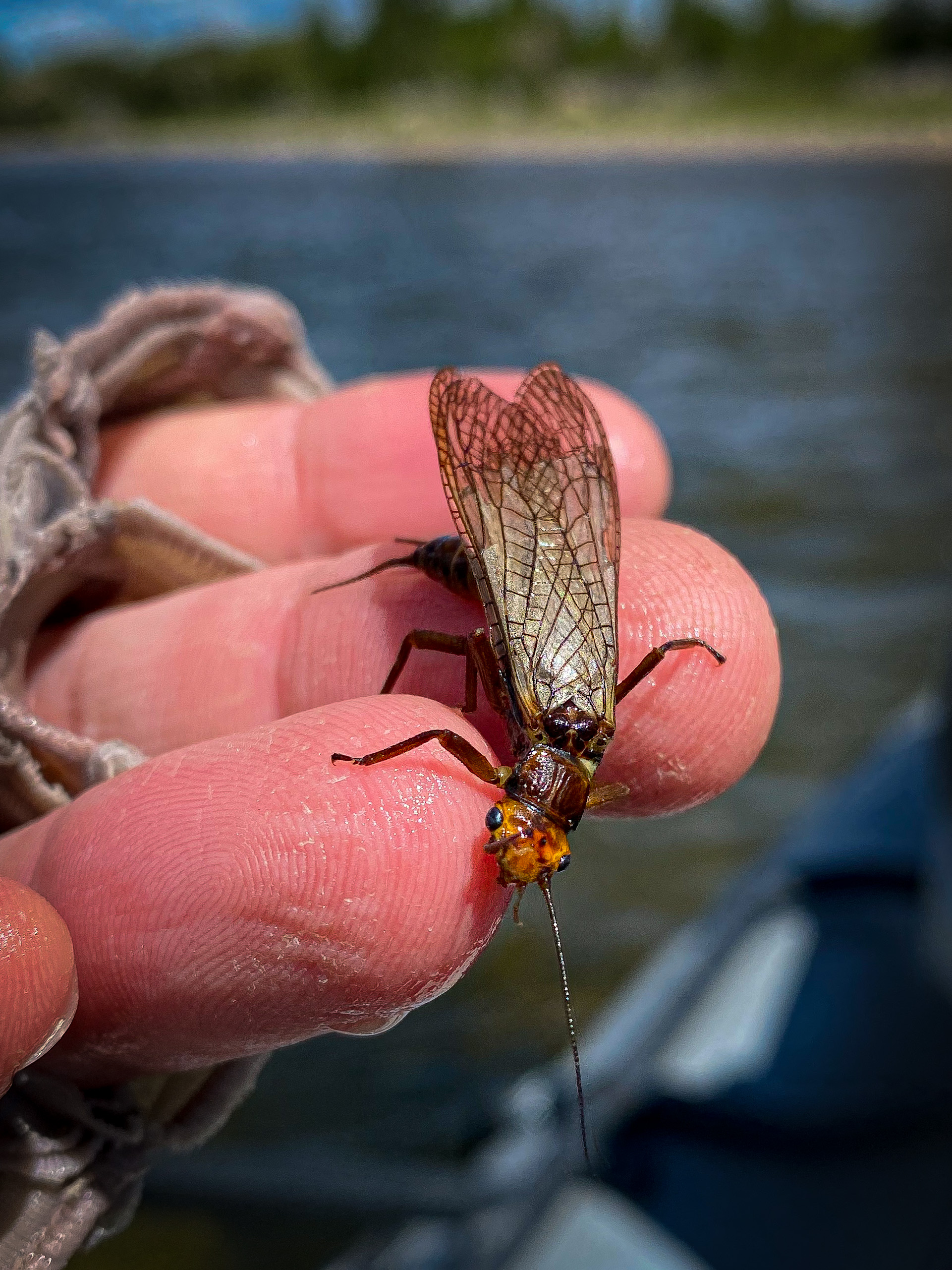 The second largest stoneflies in the west are also the most underrated. Many anglers hardly know about this important hatch. Golden stones are several species of stonefly that generally hatch at night. If you only fish during the day, you may be completely oblivious to this event! When I fish golden stonefly hatches, I will often see only a few bugs during the daylight hours. But the fish do not forget what happens at night, when these clumsy morsels emerge and start their attempts make flight. Many people don’t realize that fish will start to eat big foam patterns in June, well before the big terrestrials are predominant. The main reason for this is the nightly emergence of golden stones!